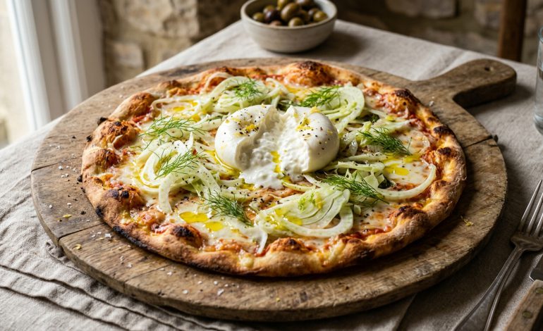 La pizza fina de hinojo, burrata y aceite de limón es una receta ideal para quienes buscan una comida ligera, deliciosa y con un toque gourmet. Siguiendo estos pasos y consejos, podrás disfrutar de una pizza con sabores frescos y equilibrados que sorprenderán a tus invitados o a tu familia.